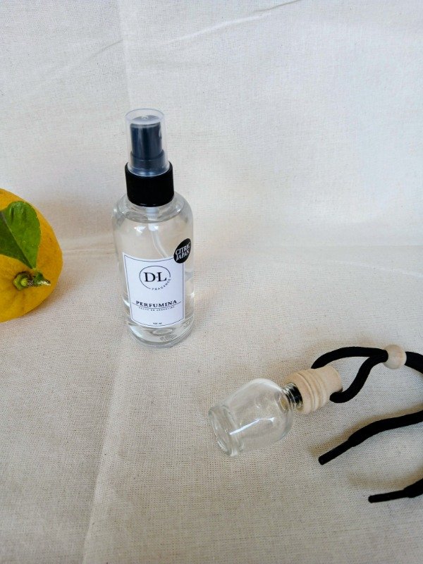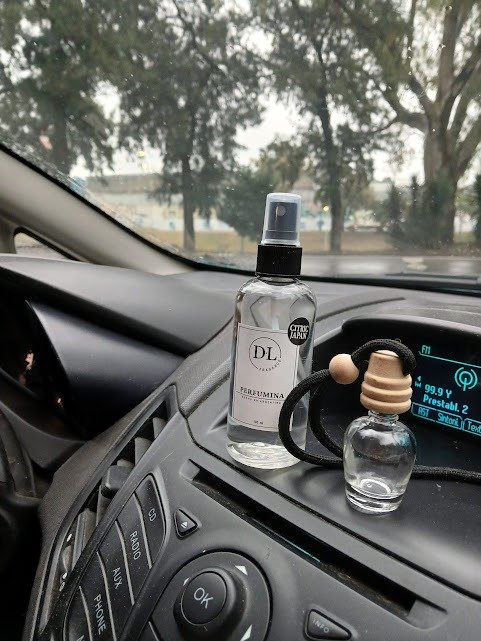 Difusor para auto de 10 cc + Perfumina de 100 ml idela para llevar en el auto y rociar en los asientos